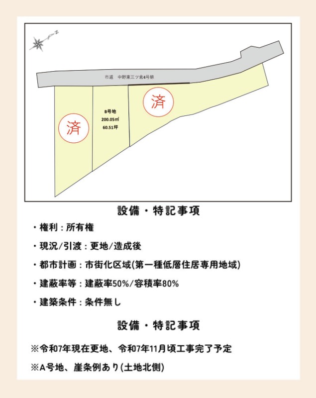 | 設備・条件 | 建築条件なし 更地 所有権 閑静な住宅街 売主 |