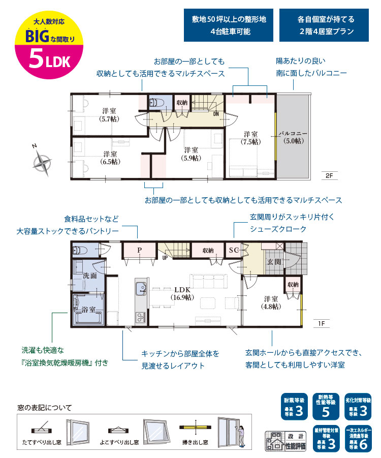 LDK 16.9畳 洋室 7.5畳 洋室 6.5畳 洋室 5.9畳 洋室 5.7畳 洋室 4.8畳 +シューズクローク+パントリー |
