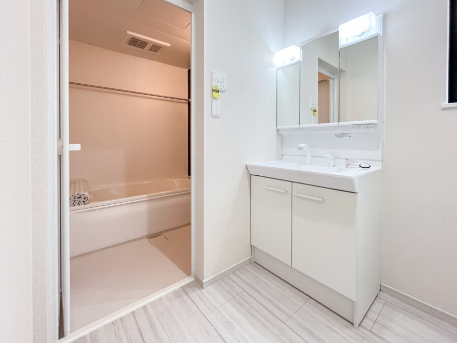 南東側接道に加え、駐車スペースも南東側に寄せることで清々とひらけた、陽あたりの良い邸宅です。