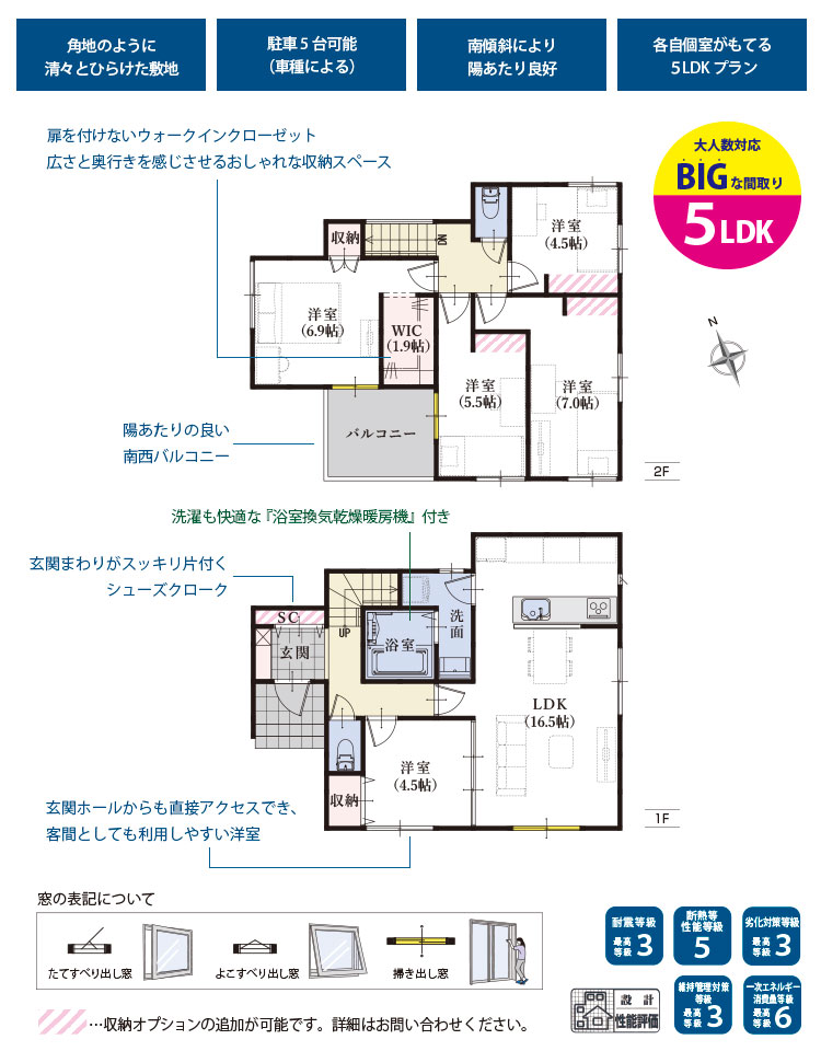●“大人数”に対応、子育てにも便利な5LDKプラン。