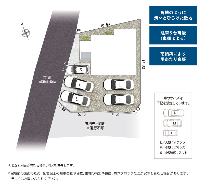 ●南傾斜に加え南側がひらけた敷地により、陽あたり良好。